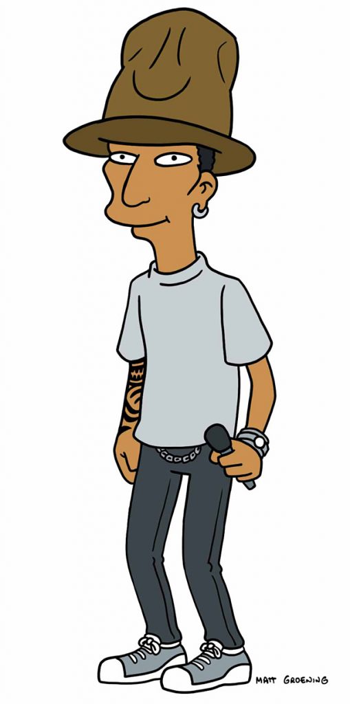 El capítulo será transmitido el próximo 8 de febrero y Pharrell se suma a una lista de personalidades que aparecerán en la temporada 26 de los Simpsons, entre los que se encuentran Sarah Silverman, los personajes de Futurama, Sammy Hagar y Will Forte.