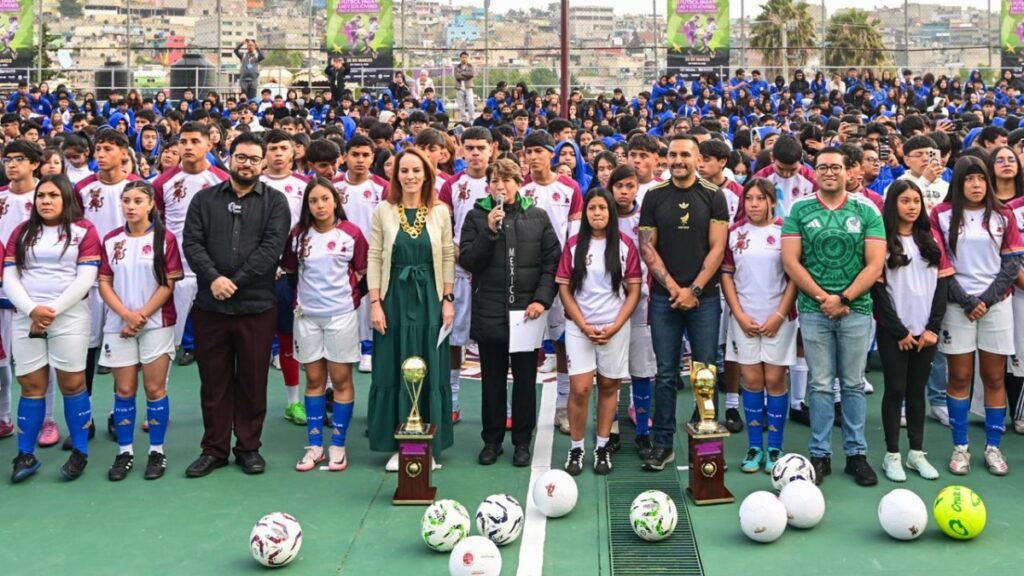 Desde la Prepa 24, en Naucalpan, Gabriela Cuevas Barron subrayó el alcance del programa: “700 mil jóvenes ya se inscribieron a participar en 95 mil equipos, en las 32 entidades, un mundial de todo México”.