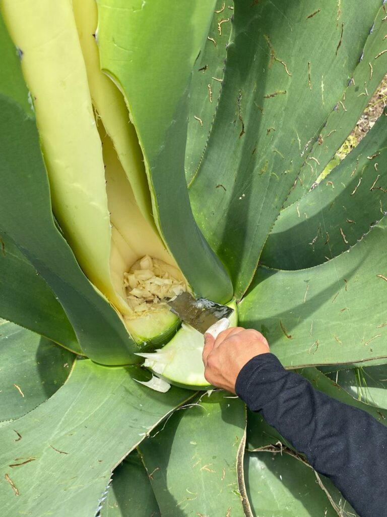 “Si tenemos suerte, a lo mejor esa misma tarde se empieza a producir el aguamiel en el corazón del maguey”, comenta Fernando.