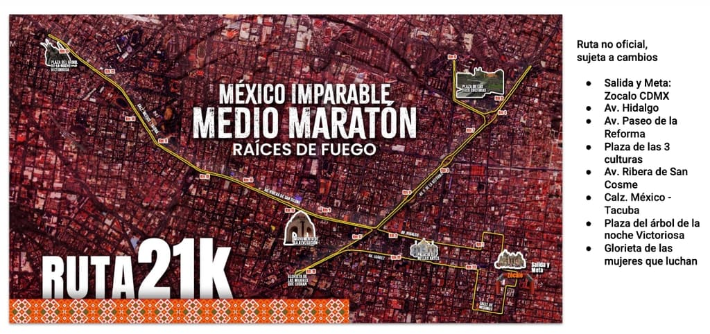 Como parte del serial México Imparable, la CDMX será el escenario del segundo episodio del circuito: la carrera Raíces de Fuego, que contará con distancias de 5, 10 y 21 kilómetros.