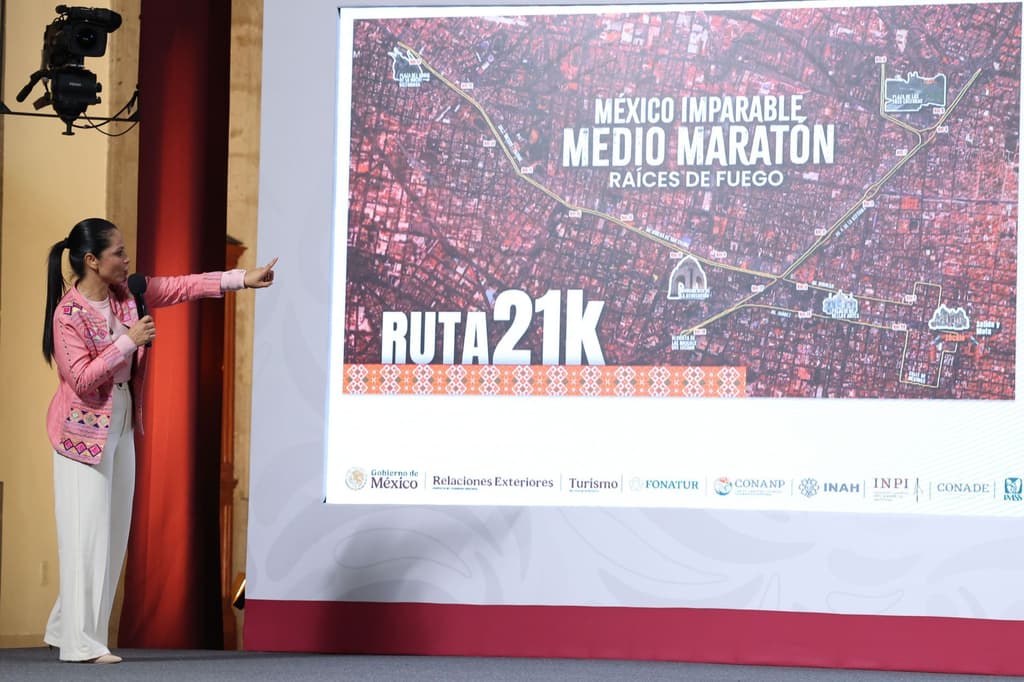 “Venimos a presentar e invitar a que participen en el segundo capítulo, que es Raíces de Fuego. El 7 de diciembre vamos a iniciar. Salida y meta es aquí en el Zócalo”, anunció Mirna Beatriz de la Cruz Álvarez, líder del proyecto México Imparable.