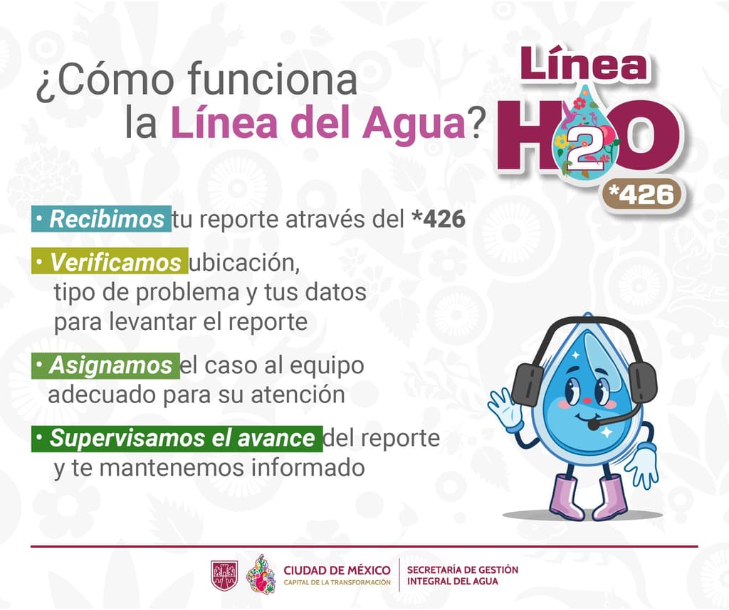 El gobierno de la Ciudad de México también puso en funcionamiento la nueva Línea H2O para reportar principalmente, fugas de agua, pero también anomalías relacionadas con la infraestructura hídrica.