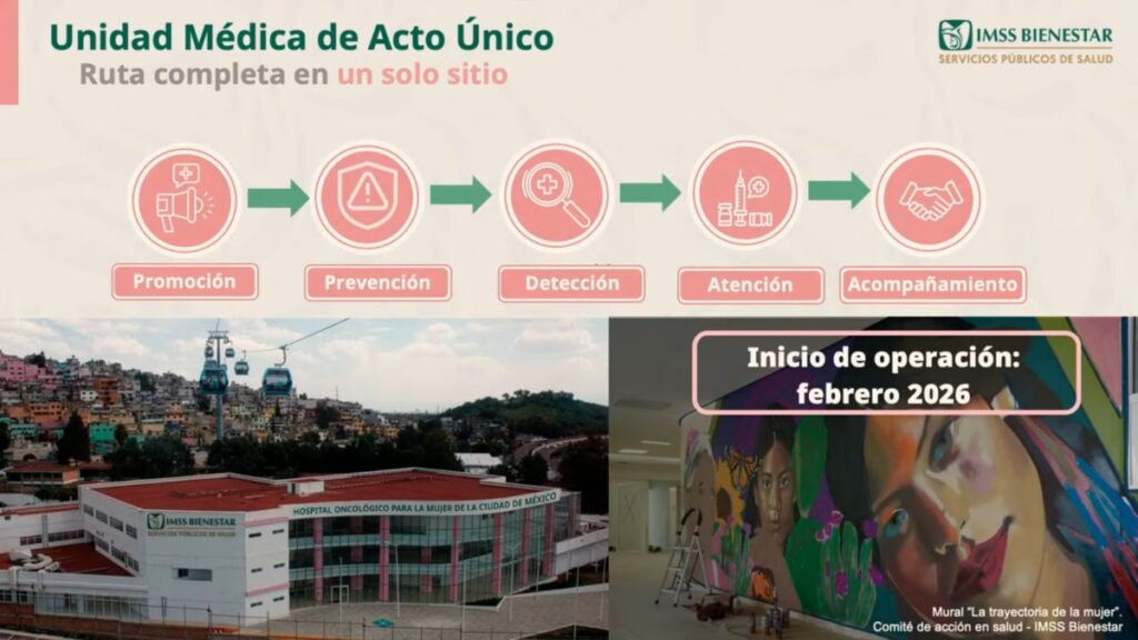 📍En la Ciudad de México, el Hospital Oncológico para la Mujer #IMSSBienestar operará bajo el modelo de acto único: un enfoque que integra en un solo lugar la detección, diagnóstico, tratamiento y seguimiento del cáncer de mama y cervicouterino.