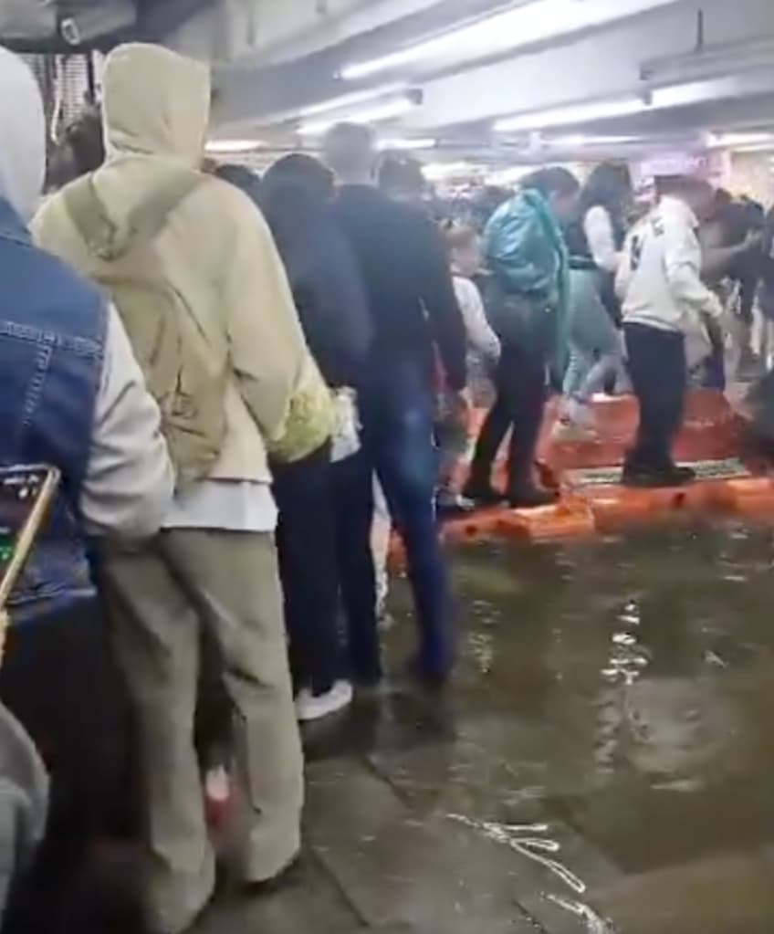 La estación Pantitlán registró inundaciones en los pasillos, lo que provocó aglomeraciones.
