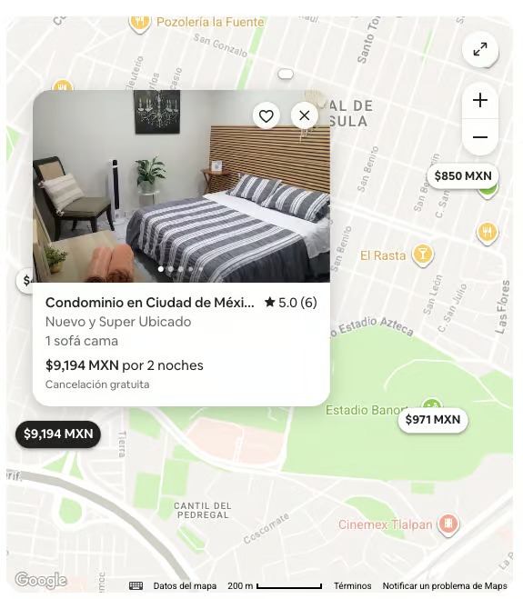 “Lo que va a pasar en las colonias circundantes al estadio, en Tlalpan, en Fuentes Brotantes, el sur de Coyoacán, el sur de Magdalena Contreras y en Xochimilco, en la puntita pegada al Azteca, es que va a haber gente que va a poner su alojamiento en el Airbnb. Pero después, cuando ya no haya Mundial, pues ya no va a haber esa demanda de turistas”, comentó.