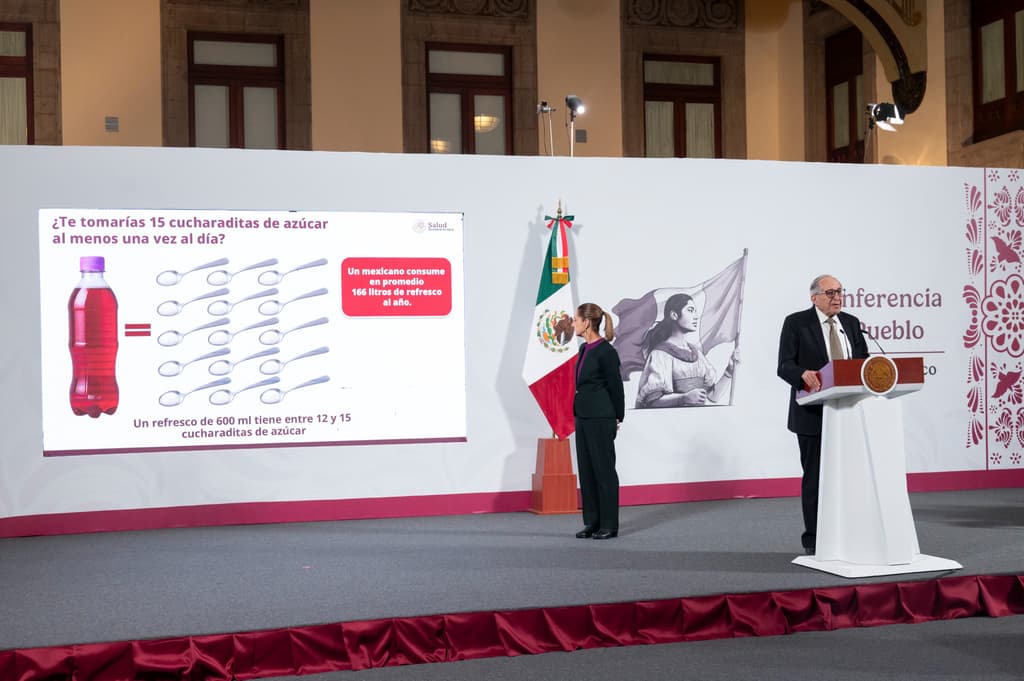 “¿Cualquiera de ustedes se tomaría 15 cucharaditas de azúcar al menos una vez al día?”, cuestionó el titular de la Secretaría de Salud.