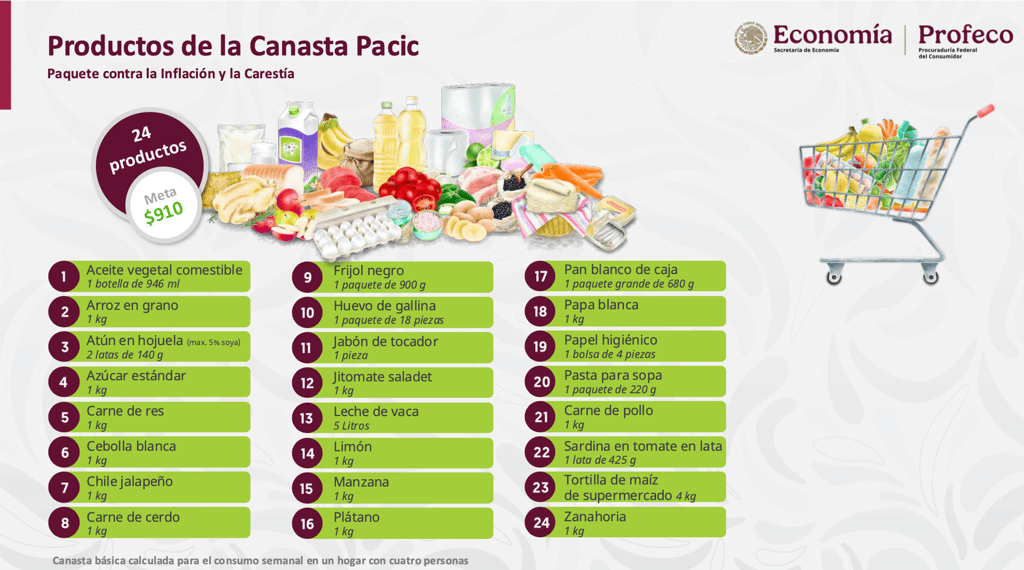 Actualmente, la canasta básica —que incluye 24 productos— se mantiene por debajo del tope de 910 pesos. Según el monitoreo más reciente, el precio promedio ronda los 844 pesos, en línea con la tendencia observada desde finales de 2024.