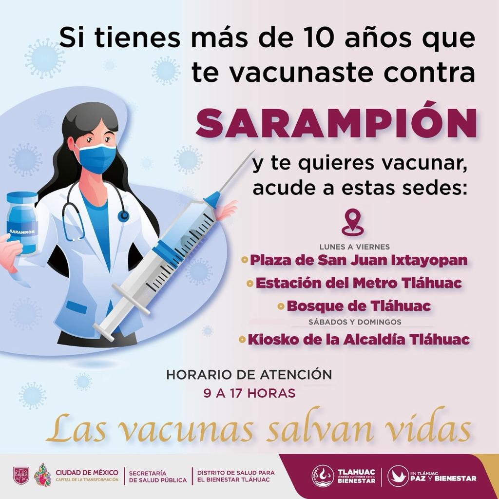 La alcaldía Tláhuac también ofrecerá una jornada de vacunación contra el sarampión. Esta dosis de refuerzo está dirigida a personas que hayan recibido su última vacuna contra esta enfermedad viral hace más de diez años.