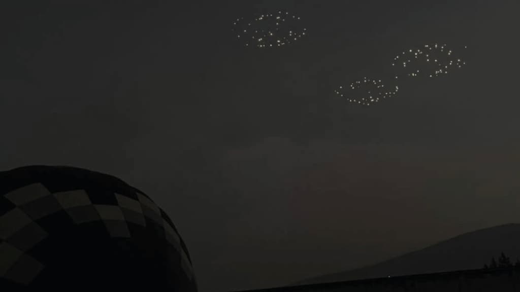 Las imágenes, que ya acumulan miles de reproducciones, muestran objetos suspendidos a una altura considerable, moviéndose con una precisión coordinada sobre el paisaje de las pirámides del Sol y la Luna.