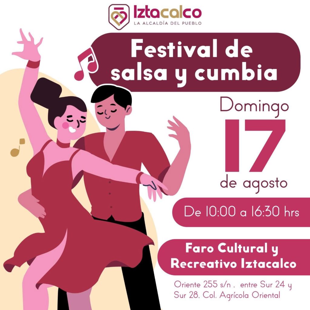 El Festival de Salsa y Cumbia 2025 se llevará a cabo el domingo 17 de agosto, en un horario de 10:00 a 16:30 horas.