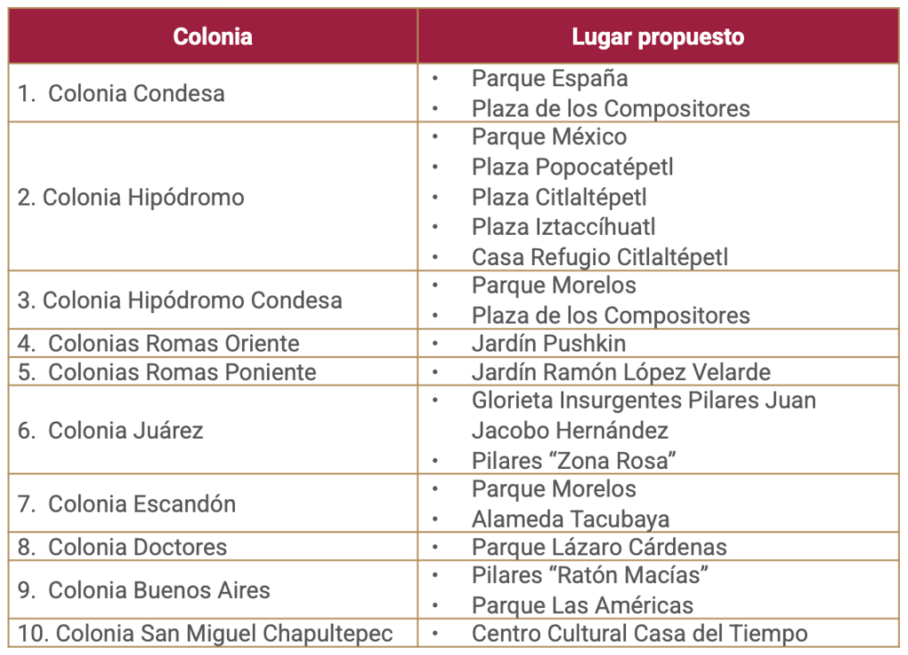 Entre el 28 de julio y el 9 de agosto se llevarán a cabo diálogos territoriales en colonias de la CDMX como Condesa, Hipódromo, Roma Norte, Roma Sur, Juárez, Escandón, Doctores y San Miguel Chapultepec.