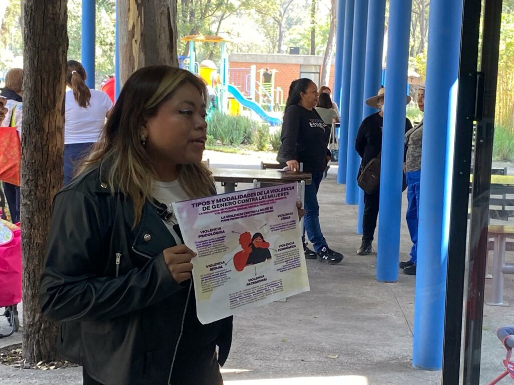 Érika, encargada de impartir los talleres, explica que en estos “se habla de tipos y modalidades de violencia, nuevas masculinidades, corresponsabilidad en la familia, Derechos Humanos, bienestar y autocuidado“.