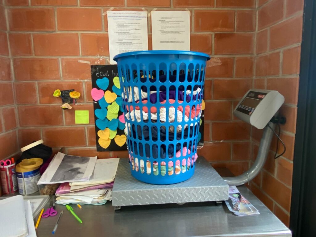 Al llegar, las usuarias deben pesar su ropa en una báscula para asegurarse de no rebasar la carga máxima permitida. Se recomienda que la carga tampoco sea mayor a 5 kilos para no desperdiciar recursos.