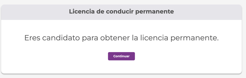 Si eres candidata o candidato a tramitar la licencia permanente, te aparecerá el siguiente mensaje: