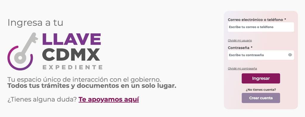 En ambos casos necesitas tener tu cuenta Llave CDMX. Si aún no la tienes, créala en llave.cdmx.gob.mx