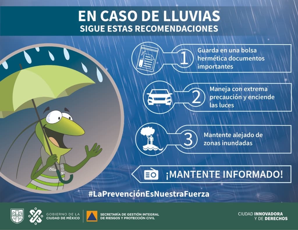 Ante la temporada de lluvias en la CDMX y Edomex, la SGIRPC dio algunas recomendaciones a la población para evitar inundaciones, así como para prevenir riesgo por el clima intenso que se espera en la capital.