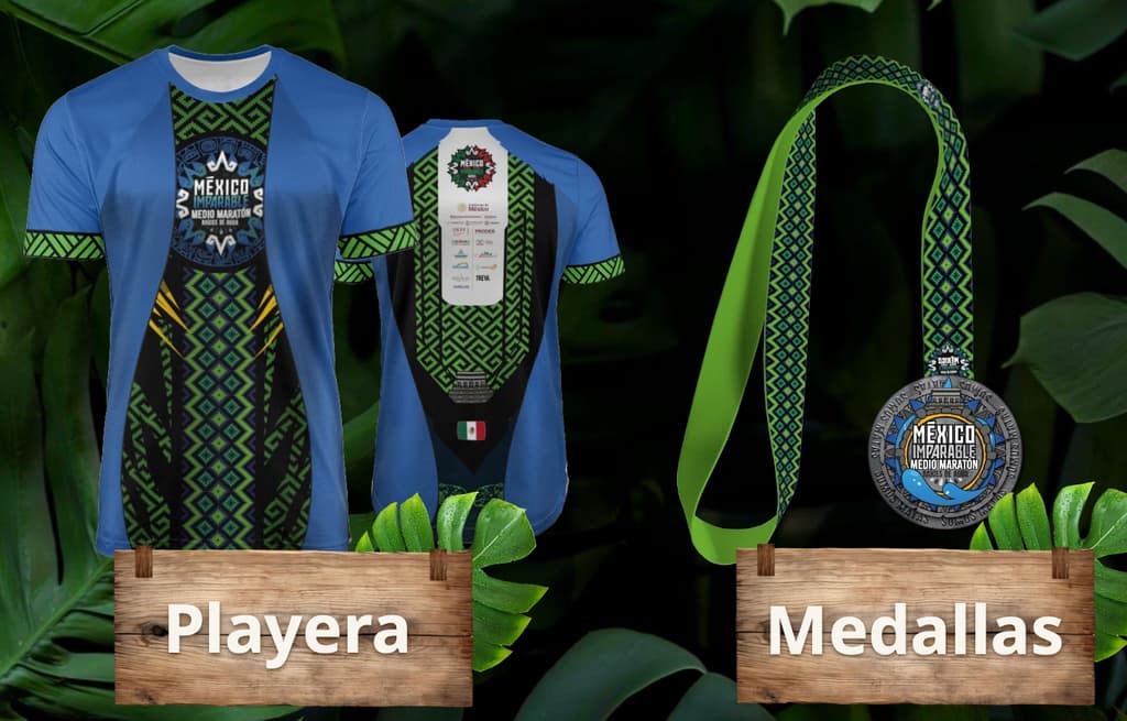 Así son las playeras y medalla de la carrera Raíces del agua