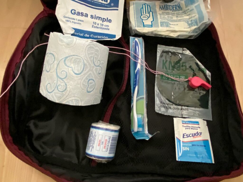 Se trata de una mochila común y corriente cuyo armado y colocación estratégica puede garantizar que en caso de emergencia los habitantes cuenten con un botiquín para urgencias médicas, artículos de primera necesidad y objetos que faciliten su búsqueda en caso de quedar atrapados.