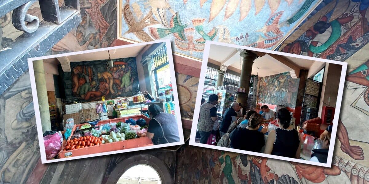 Desde sus entradas, las paredes y hasta el techo, donde comerciantes venden sus productos, el mercado Abelardo Rodríguez se encuentra tapizado de murales de las y los alumnos de Diego Rivera, según Crónicas. El Muralismo, Producto De La Revolución Mexicana, En América.