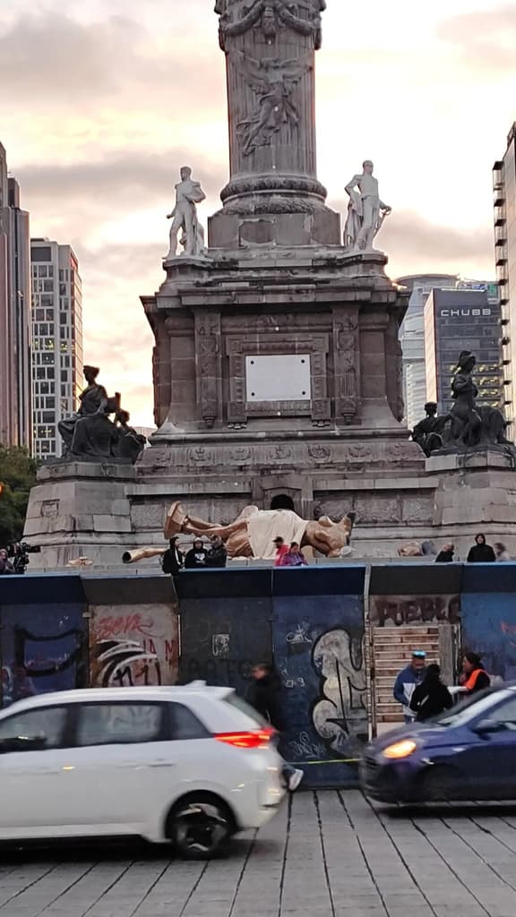 La mañana de este martes 22 de octubre se desató la confusión en redes sociales cuando comenzaron a circular imágenes de una escultura caída en el monumento del Ángel de la Independencia, en pleno Paseo de la Reforma.