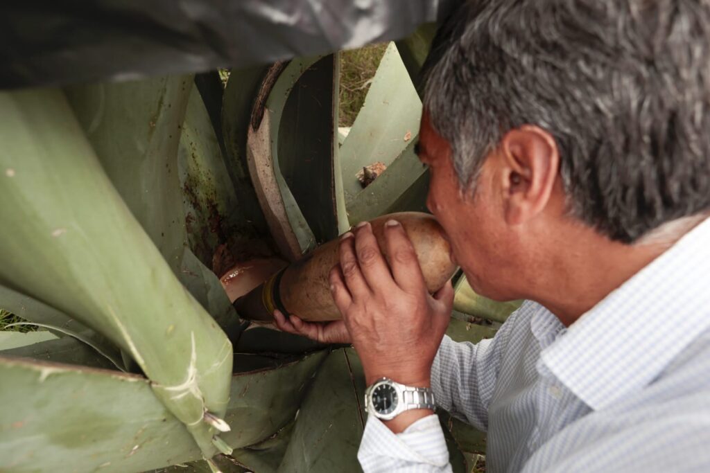 De acuerdo con la Secretaría de Agricultura y Desarrollo Rural, “el pulque es una bebida alcohólica de origen prehispánico que se obtiene de las pencas del maguey y se elabora a partir de la fermentación del mucílago (sustancia orgánica de textura viscosa, propia de algunos vegetales), popularmente conocido como aguamiel.”