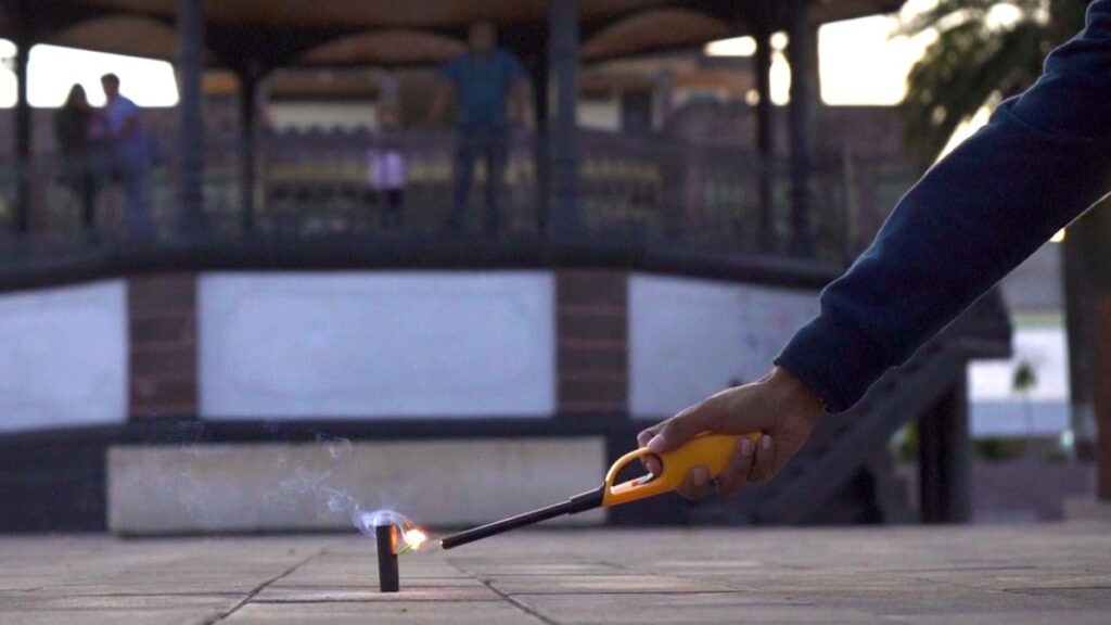 - La pirotecnia siempre debe encenderse en el suelo, nunca en la mano.