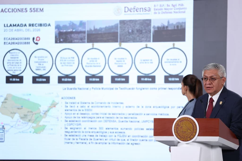 Durante la conferencia mañanera de la presidenta Claudia Sheinbaum de este 21 de abril, funcionarios del Edomex y el secretario de Seguridad y Protección Ciudadana, Omar García Harfuch, revelaron detalles y la cronología del tiroteo en Teotihuacán.