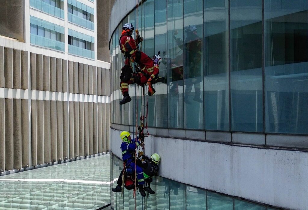 Al mismo tiempo, se llevaron a cabo simulaciones de rescate en el cruce de Paseo de la Reforma y Avenida Juárez y en Reforma 222, respectivamente.
