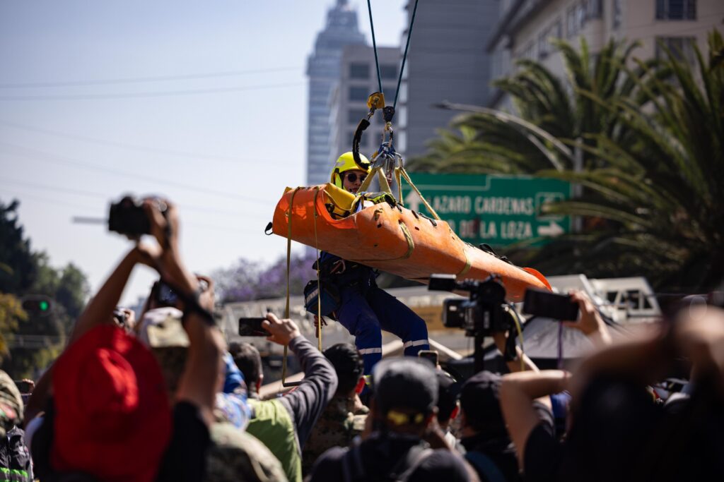 En paralelo, más de 16 mil elementos de la Secretaría de Seguridad participaron en el operativo; se realizaron sobrevuelos con helicópteros del agrupamiento Cóndores y se ejecutaron escenarios de rescate vertical, extracción vehicular y atención a estructura colapsada en Paseo de la Reforma.