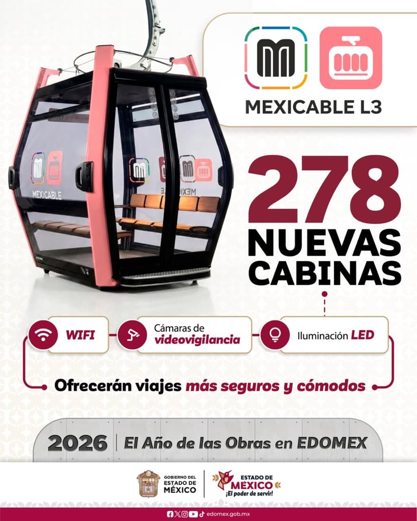 El Gobierno del Edomex dio a conocer los avances en la construcción de la Línea 3 del Mexicable, como parte del proyecto “2026, Año de las Obras en EdoMéx”.
