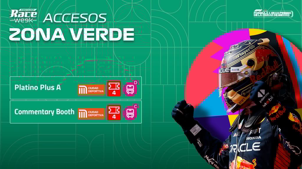 Boletos: Grada 9, Grada 10 y Grada 11, Terraza A, Track Side Box A y B, y Speed Lounge