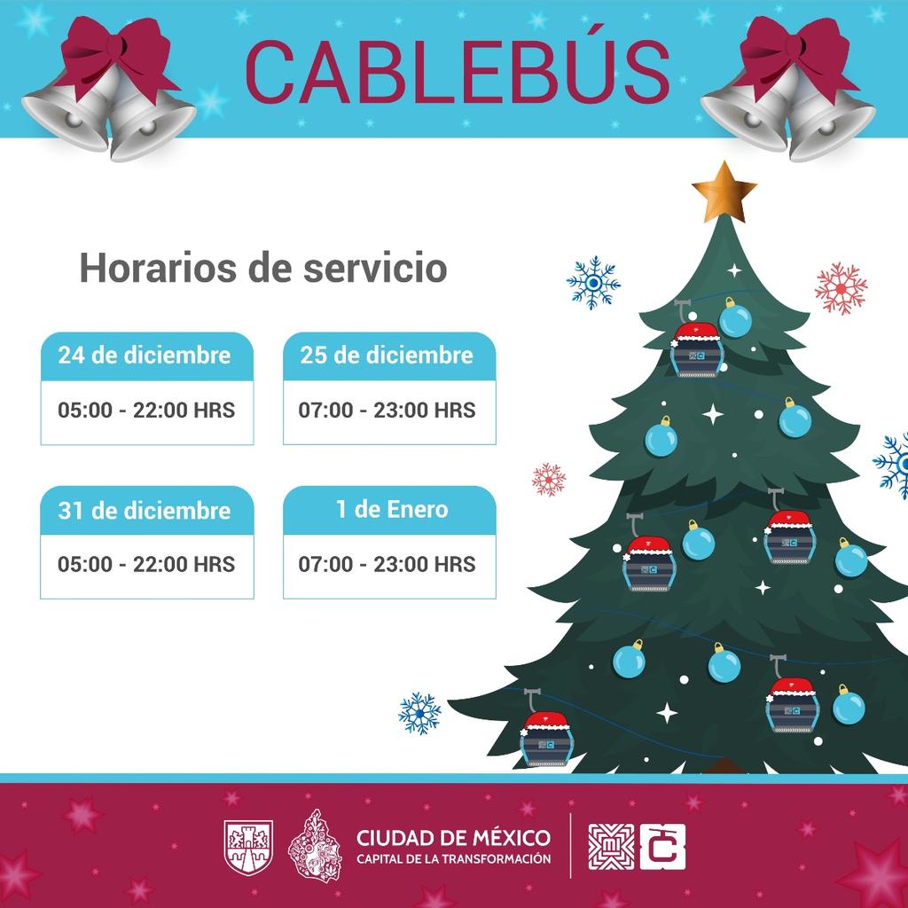 Además, la Secretaría de Movilidad (Semovi) de la Ciudad de México anunció ajustes en los horarios del Sistema de Transporte Colectivo (STC) Metro, Metrobús, Trolebús, Cablebús, Red de Transporte de Pasajeros (RTP), Tren Ligero y Ecobici debido a las celebraciones de fin de año.