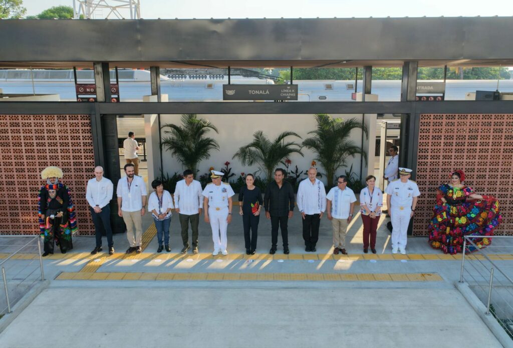 Sheinbaum inició su recorrido en la estación de Tonalá, donde cortó el listón y develó la placa para reiniciar el servicio de tren de pasajeros. Posteriormente, en la estación Arriaga, visitó el Parque Lineal y anunció que al día siguiente los usuarios podrán utilizar la ruta hasta Ixtepec, Oaxaca.