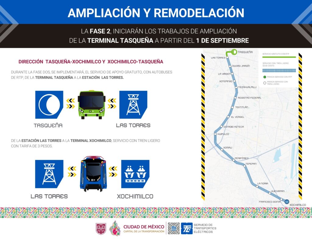 La segunda fase, que incluye la ampliación de la terminal Tasqueña, comenzará el 1 de septiembre de 2025. La obra consiste en: