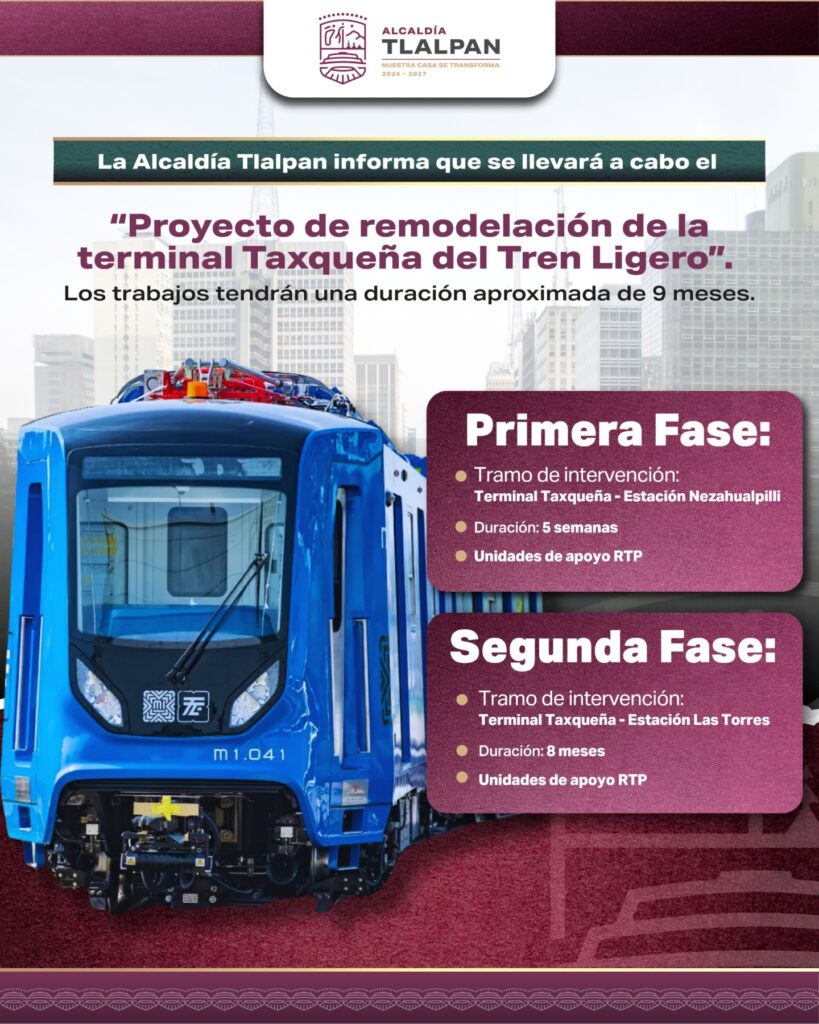 Vale recordar que a finales de julio comenzó la primera fase de las obras de remodelación del Tren Ligero, que duraron alrededor de un mes en cuatro estaciones, de Xotepingo a Las Torres.