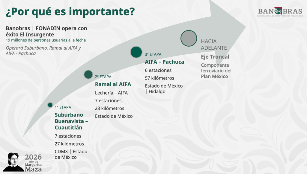 De acuerdo con los datos presentados por Banobras, el tren ya tenía una inversión pública importante desde su origen, incluyendo recursos del Fonadin y financiamiento de Banobras.