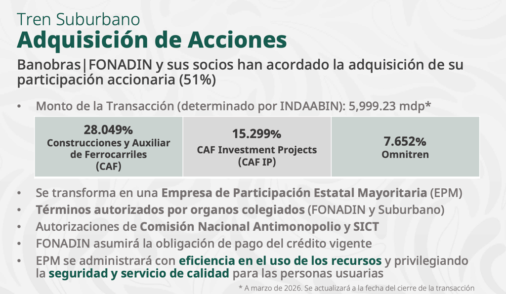Además, el Estado también asumirá compromisos financieros del Tren Suburbano, como parte de la reestructura tras la compra.