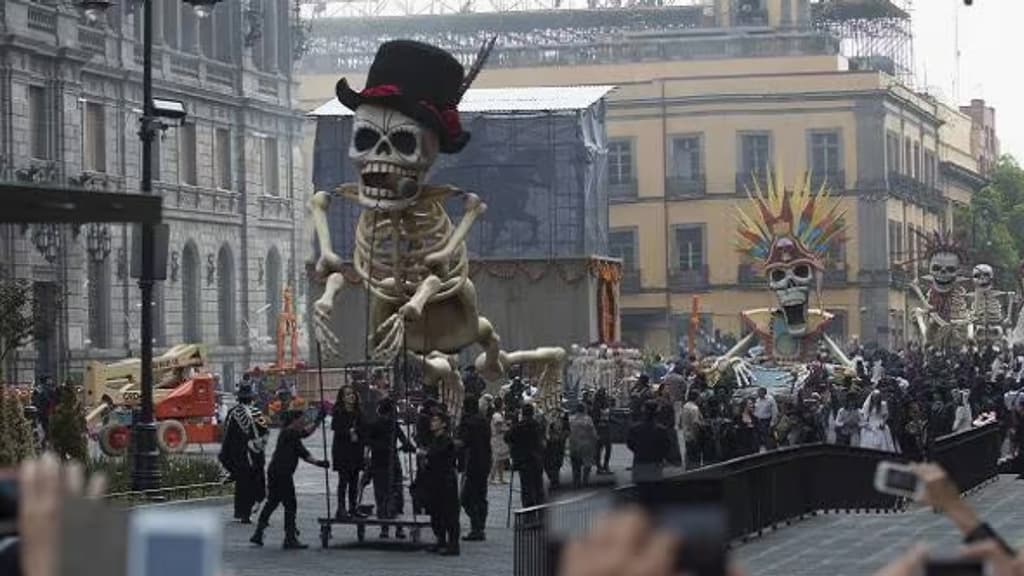 El origen de este desfile se remonta a 2014, durante la filmación de la película Spectre de James Bond en el Centro Histórico de la CDMX. El director, Sam Mendes, decidió incorporar un gran desfile para retratar esta festividad. Artistas mexicanos crearon carros alegóricos y figuras gigantes de esqueletos, y cerca de mil quinientos extras interpretaron a catrinas y calaveras que danzaron por las calles. Es interesante notar que los guionistas concibieron esta celebración inspirándose en el Carnaval de Brasil, pero adaptándolo al estilo mexicano.