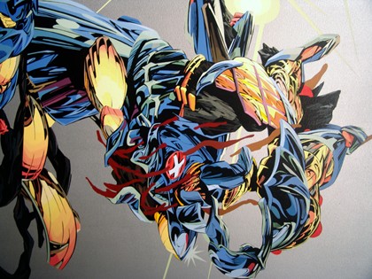 El trabajo de Aaron Noble ha hecho explotar mentes en varios continentes. Involucrado en incontables proyectos de mural a gran escala, cofundador del “Clarion Alley Mural Project”, movimiento muralista surgido en San Francisco a principios de los noventa, Noble ha dejado bien en claro su influencia primaria: los cómics, principalmente los de Image y uno que otro de Marvel.