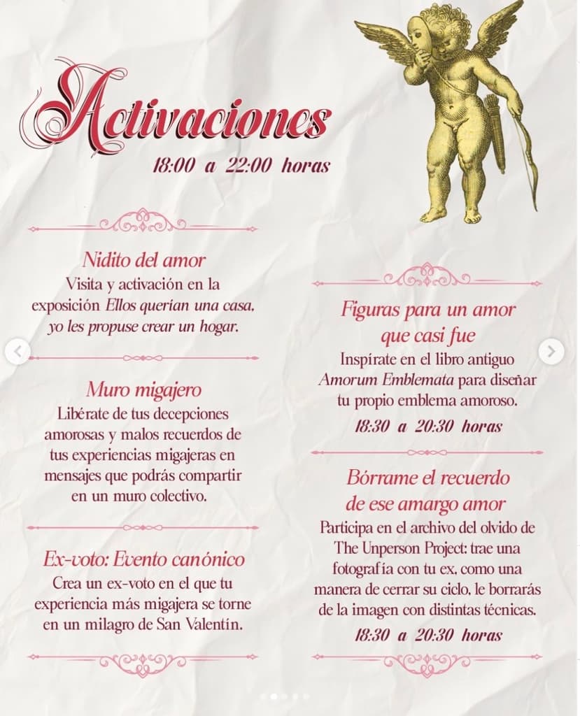 - Muro Migajero y Ex-votos: Desahógate escribiendo ese mensaje que nunca enviaste en una pared colectiva o convierte tu tragedia amorosa en una pieza de arte popular.