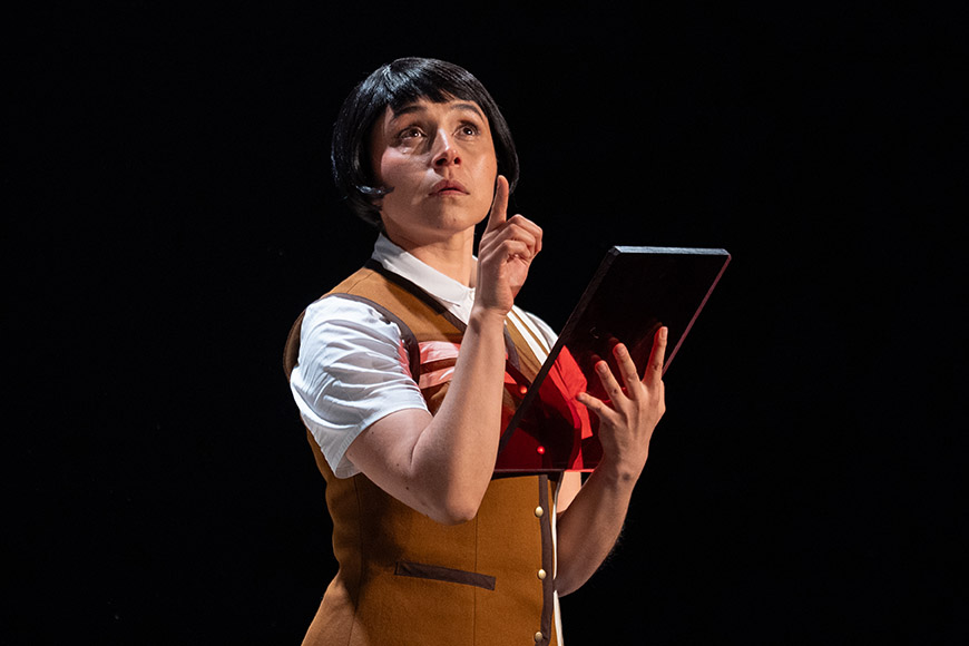 El sentido de lo humano es el hilo conductor de la puesta en escena, construida a partir de viñetas aisladas en una escenografía sencilla de paneles negros, donde la diferenciación entre humanos y robots se diluye cada vez más.