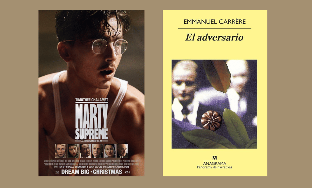 En este caso, el vínculo entre ambas obras está en la construcción de la identidad pública, la actuación llevada a su máxima consecuencia. El adversario explora cómo una persona puede fabricar una versión de sí misma hasta que esa máscara lo devora. Una historia como Marty Supreme también dialoga con esa tensión entre talento real, ambición y el personaje que se crea ante los demás.