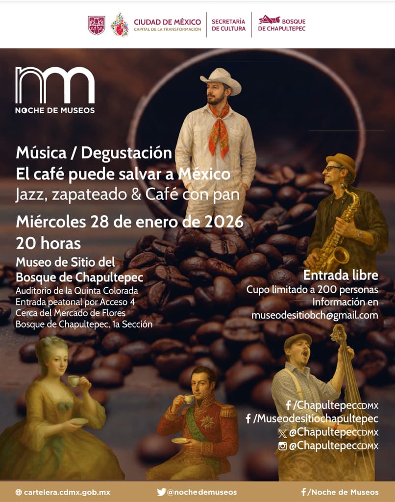 Si tu idea de una noche perfecta incluye café con buen aroma, música en vivo y un plan cultural sin complicaciones, apunta esto: el miércoles 28 de enero el Museo de Sitio del Bosque de Chapultepec se suma a la Noche de Museos con una actividad que suena a abrazo para el alma.