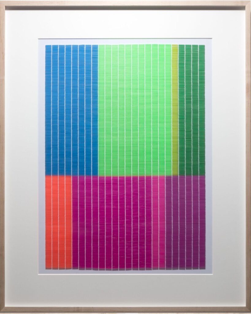 Por otra parte, El filo del deseo te invita a adentrarte más allá de lo superficial, donde capas de color, piedra y el paso del tiempo se revelan a través de cortes precisos y bordes afilados. Un ejemplo de esto es 3,936 capas de pintura 1A – 1B (2011), que presenta dos objetos compuestos por casi cuatro mil capas monocromáticas de pintura acrílica. También destaca la obra 89,911 – An. (2021), un gran mosaico cuadrado elaborado con diminutas piezas de andesita, una piedra gris de origen volcánico utilizada en la escultura prehispánica mexicana.