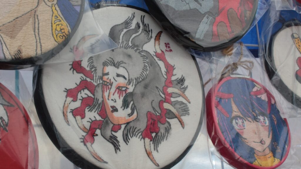 Tal es el caso de Tania, mejor conocida como Satania, una artista textil que mezcla bordado, anime y cultura pop en piezas únicas que conectan con las nuevas generaciones.