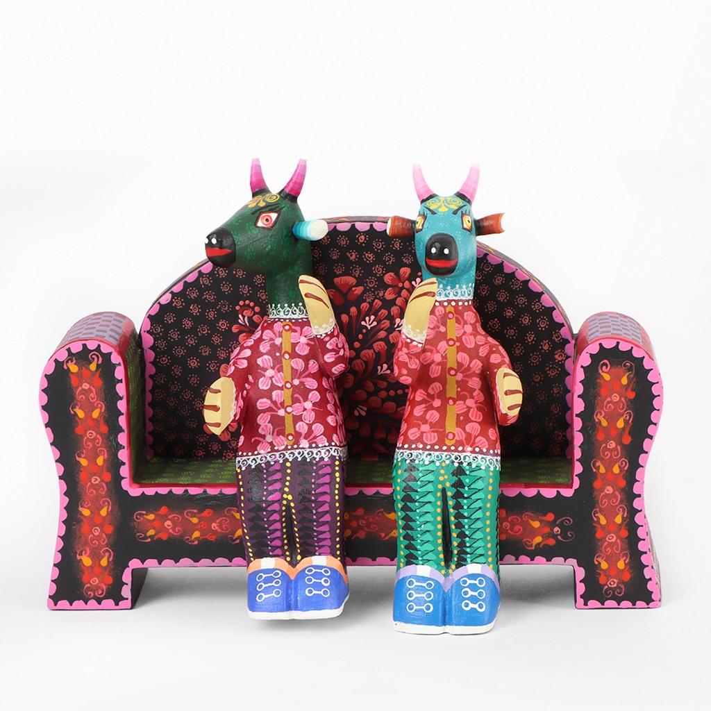 Una de sus colecciones más vastas son los alebrijes. En su catálogo de compra hallarás piezas únicas de alebrijes elaborados por artesanos de la CDMX y a precio justos para ellos, es decir, que de lo que pagues, una gran parte va directo a ellos, para que puedan seguir viviendo de su arte.