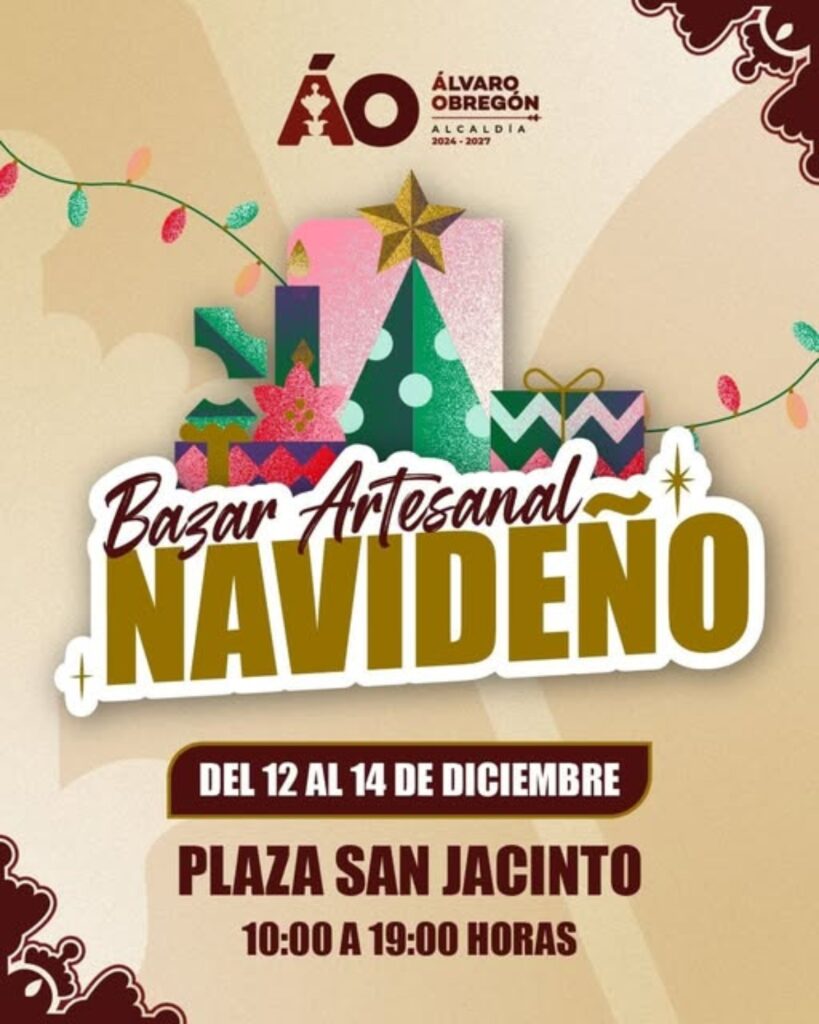 Ahora que ya tienes idea de qué regalar esta Navidad. No olvides que el bazar artesanal navideño se realizará en la plaza San Jacinto, dentro de la alcaldía Álvaro Obregón, del 12 al 14 de diciembre, con un horario de 10:00 a 19:00 horas.