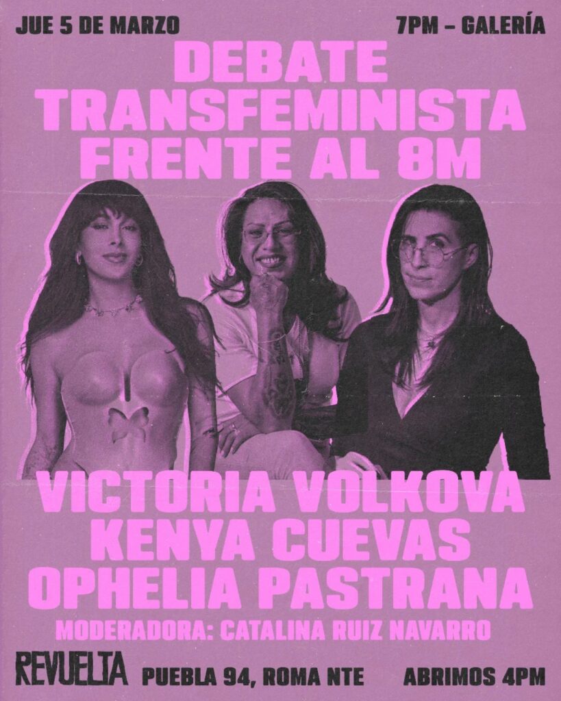 Con motivo del Día Internacional de la Mujer, la CDMX será sede de un debate transfeminista previo al 8M. Contará con la participación de destacadas invitadas como Victoria Volkova, Kenya Cuevas y Ophelia Pastrana, y será moderado por Catalina Ruiz Navarro.