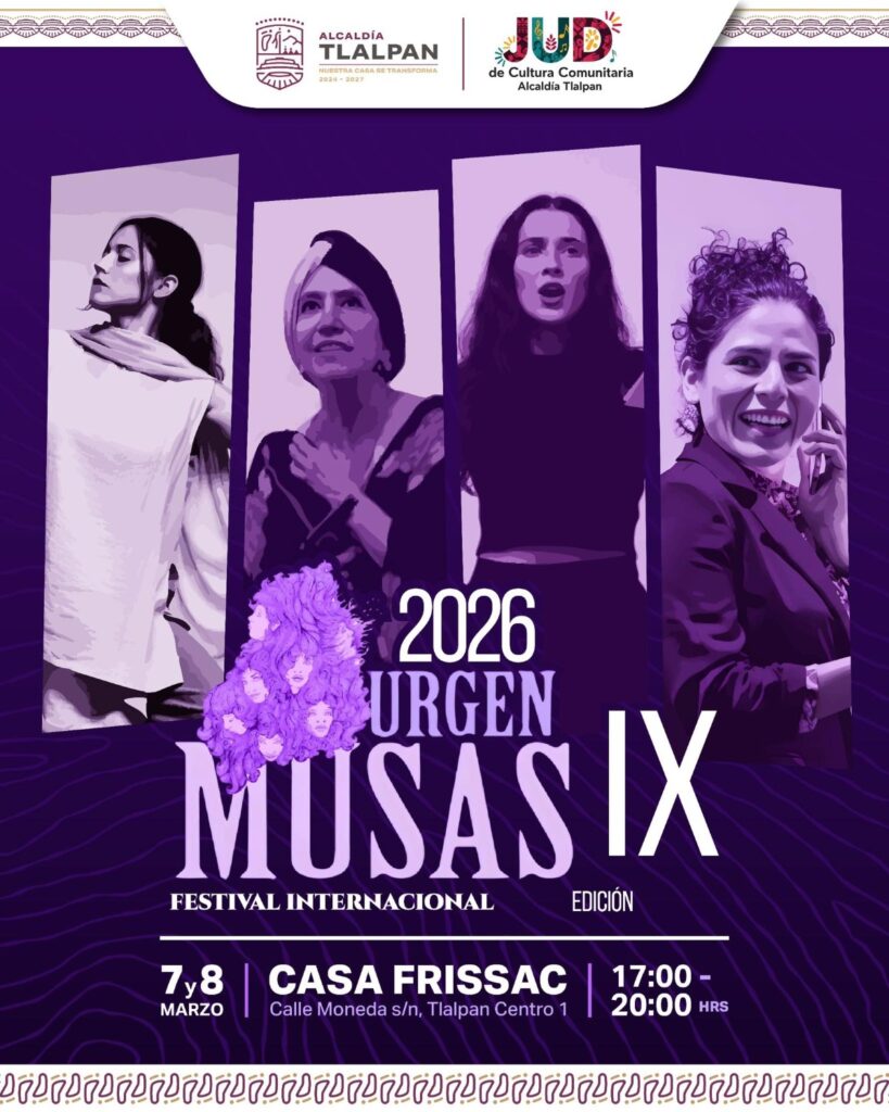 La alcaldía Tlalpan será sede de la IX Edición del Festival Internacional “Urgen Musas” 2026. Este evento de dos días es una invitación a disfrutar del talento, la creatividad y la cultura comunitaria, siendo un espacio diseñado para la expresión artística de las mujeres.