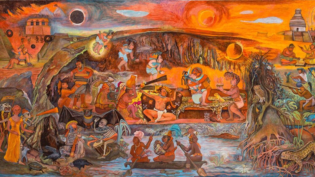 La actividad ofrece un recorrido por la vida y obra de la artista guatemalteco-mexicana, con un enfoque en su mural “Xibalbá, el inframundo de los mayas” (2014). En esta obra, Lazo plasmó su reinterpretación del mundo maya basándose en el Popol Vuh y su propia identidad.